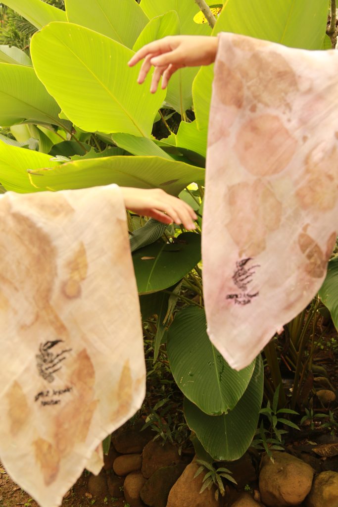 Temukan berbagai hasil karya ecoprint yang dihasilkan melalui teknik pewarnaan alami menggunakan daun dan bunga. Setiap motif memiliki keunikan tersendiri dan menjadi media pembelajaran tentang kekayaan hayati serta proses kreatif yang ramah lingkungan.